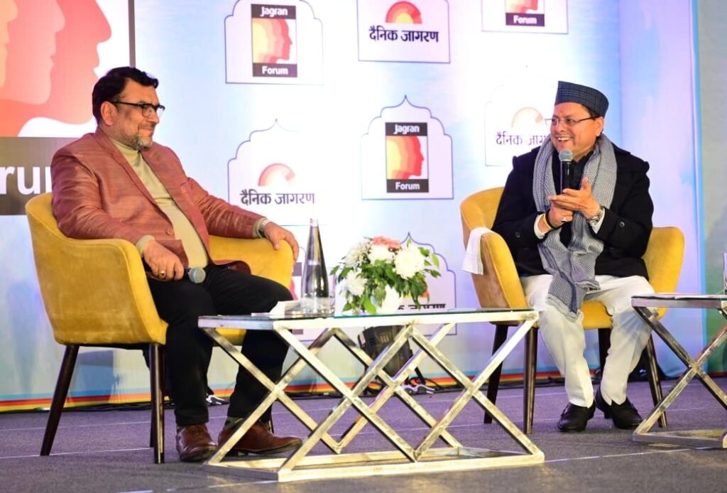 मुख्यमंत्री पुष्कर सिंह धामी ने आज दैनिक जागरण समूह द्वारा आयोजित प्रतिष्ठित “जागरण फोरम” संवाद कार्यक्रम में प्रतिभाग किया । “उत्तराखण्ड : संभावनाओं का नया द्वार” विषय पर आयोजित इस कार्यक्रम में मुख्यमंत्री ने राज्य सरकार द्वारा अब तक लिए गए ऐतिहासिक और दूरदर्शी निर्णयों पर विस्तार से जानकारी साझा की । उन्होंने न केवल सरकार की नीतियों और निर्णयों की पृष्ठभूमि स्पष्ट की, बल्कि राज्य के भविष्य को लेकर सरकार की स्पष्ट सोच और प्रतिबद्धता को भी रेखांकित किया।